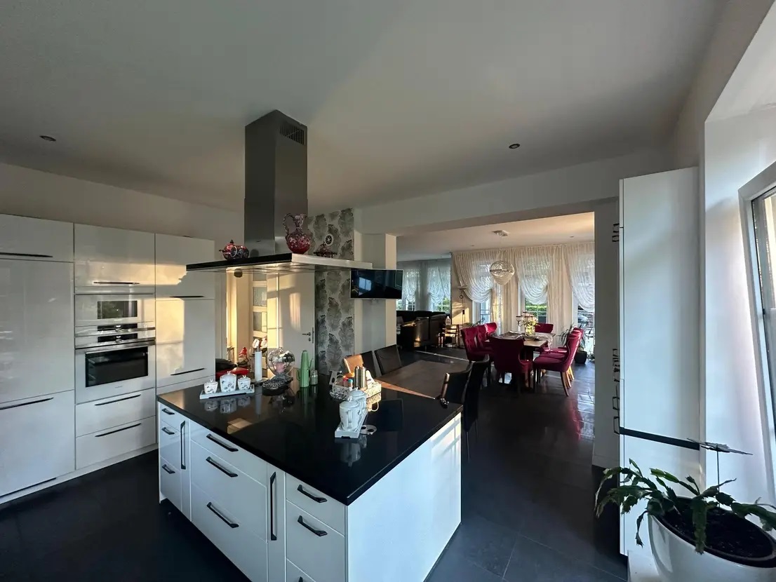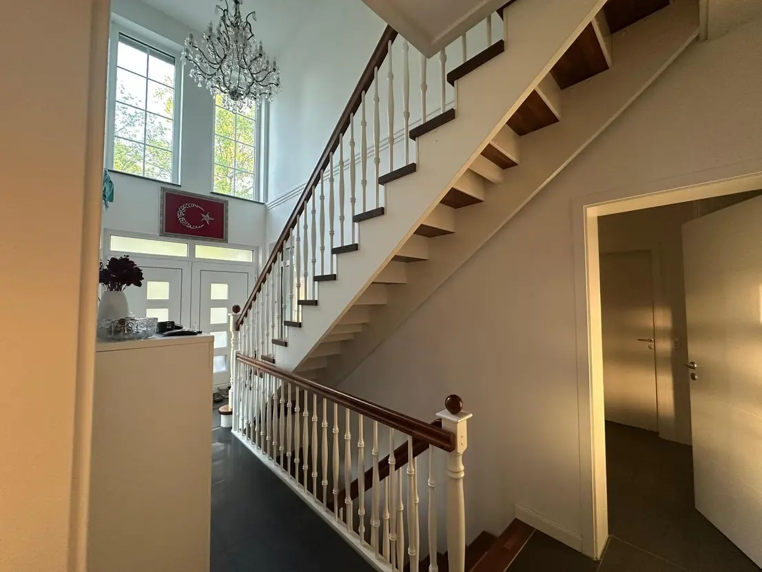 Die Villa überzeugt mit einer durchdachten Raumaufteilung und hochwertiger Ausstattung: Im Obergeschoss befinden sich drei großzügige Schlafzimmer – jedes mit eigenem Bad. Das Elternschlafzimmer verfügt zusätzlich über eine begehbare Ankleide, ein luxuriöses Bad mit Whirlpool sowie Zugang zu einem privaten Balkon. Im Erdgeschoss lädt ein großzügiger Wohnbereich mit Kamin zum Verweilen ein. Neben der offenen Küche befindet sich hier auch ein separates Arbeitszimmer – ideal für Homeoffice oder ruhiges Arbeiten. Vom Wohnzimmer aus gelangen Sie auf eine ca. 150 m² große, hochgelegene Terrasse mit direktem Zugang zum Garten. Unter der Terrasse befindet sich ein integrierter, wettergeschützter Stauraum – praktisch für Gartenmöbel, Spielgeräte oder Werkzeuge. Für maximalen Komfort sorgen Fußbodenheizung und zentrale Raumbelüftung auf allen Ebenen. Eine moderne Entkalkungsanlage sichert dauerhaft hohe Wasserqualität. Die einbruchsichere Verglasung auf allen Etagen sowie motorisch betriebene Rollläden im Erd- und Obergeschoss unterstreichen den hohen Sicherheits- und Wohnkomfort der Immobilie. Zusätzlich sorgt eine Solartherme für eine energieeffiziente Warmwasserbereitung und unterstützt das nachhaltige Energiekonzept des Hauses. Der vollständig bewohnbare Keller bietet vielfältige Nutzungsmöglichkeiten – ob als Hobbyraum, Gästeetage oder zusätzlicher Wohnraum.